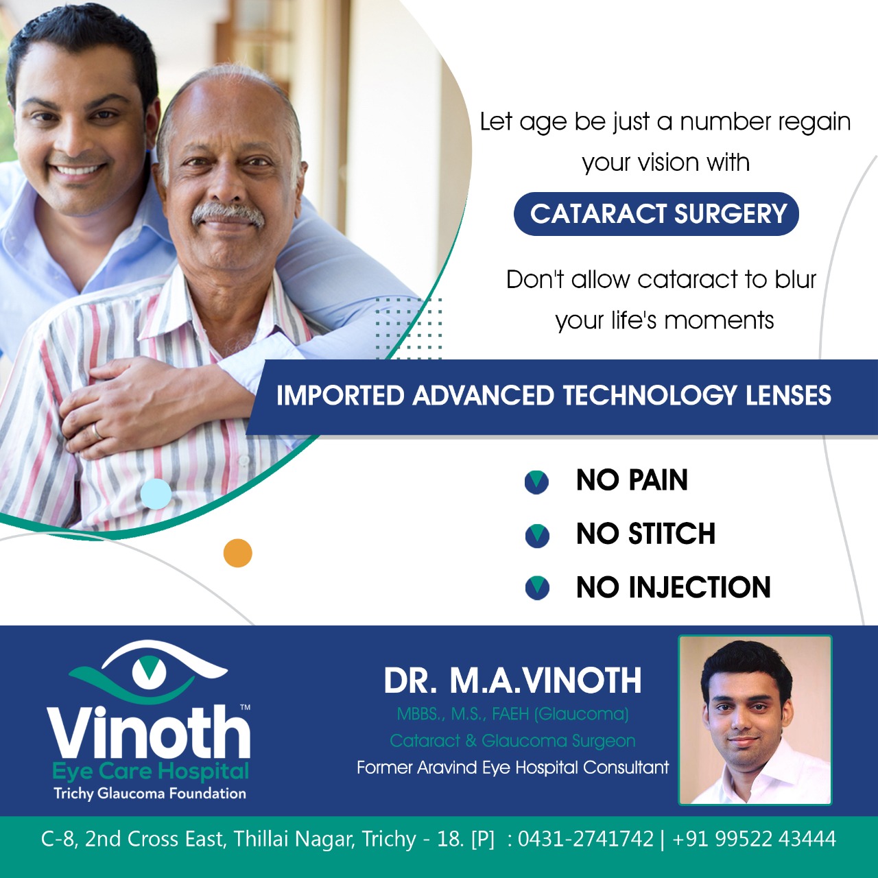 eye doctor near me Vinoth eye care hospitals offer treatment to sight-threatening diseases like cataract, glaucoma, uveitis, keratoconus, and retina problems. With extensive surgical experience, we also treat diabetic retinopathy through vitrectomy, intravitreal injections, and laser photocoagulation
